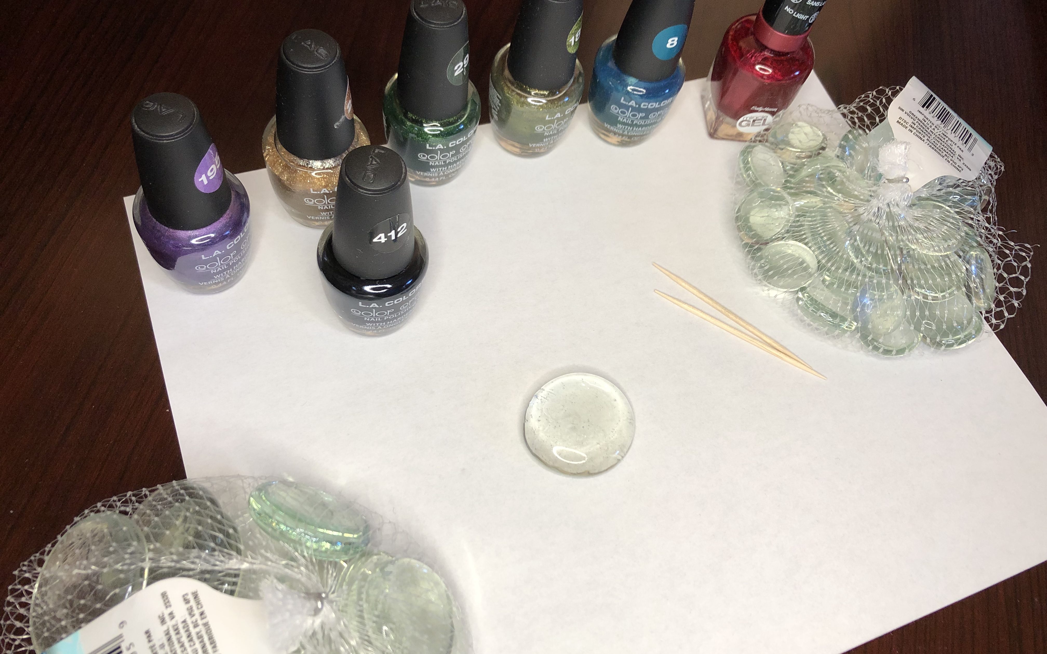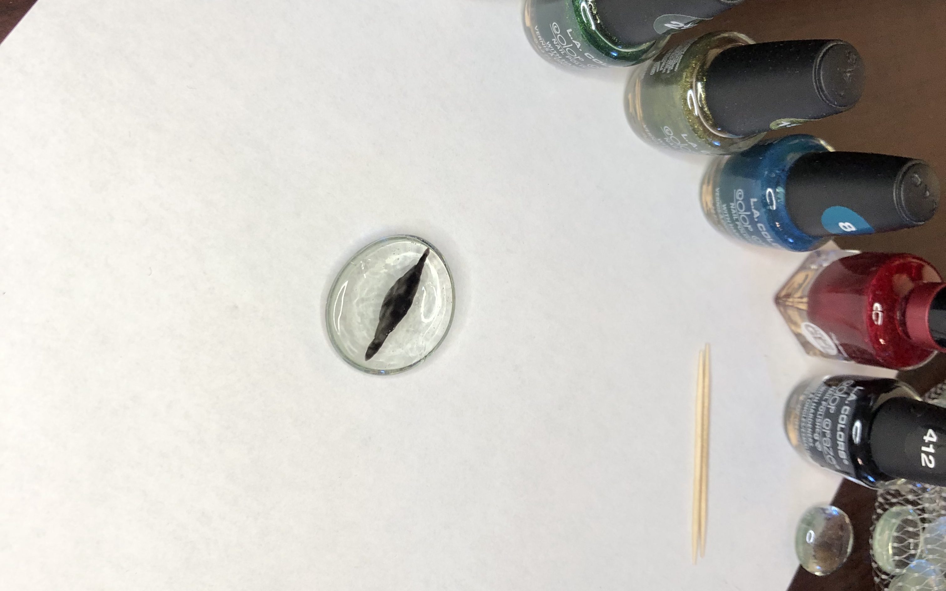 Make sure you are in a well-ventilated area or a place where you can easily open a window. The nail polish smell will get strong. Turn the cabochon to have the flat side up.