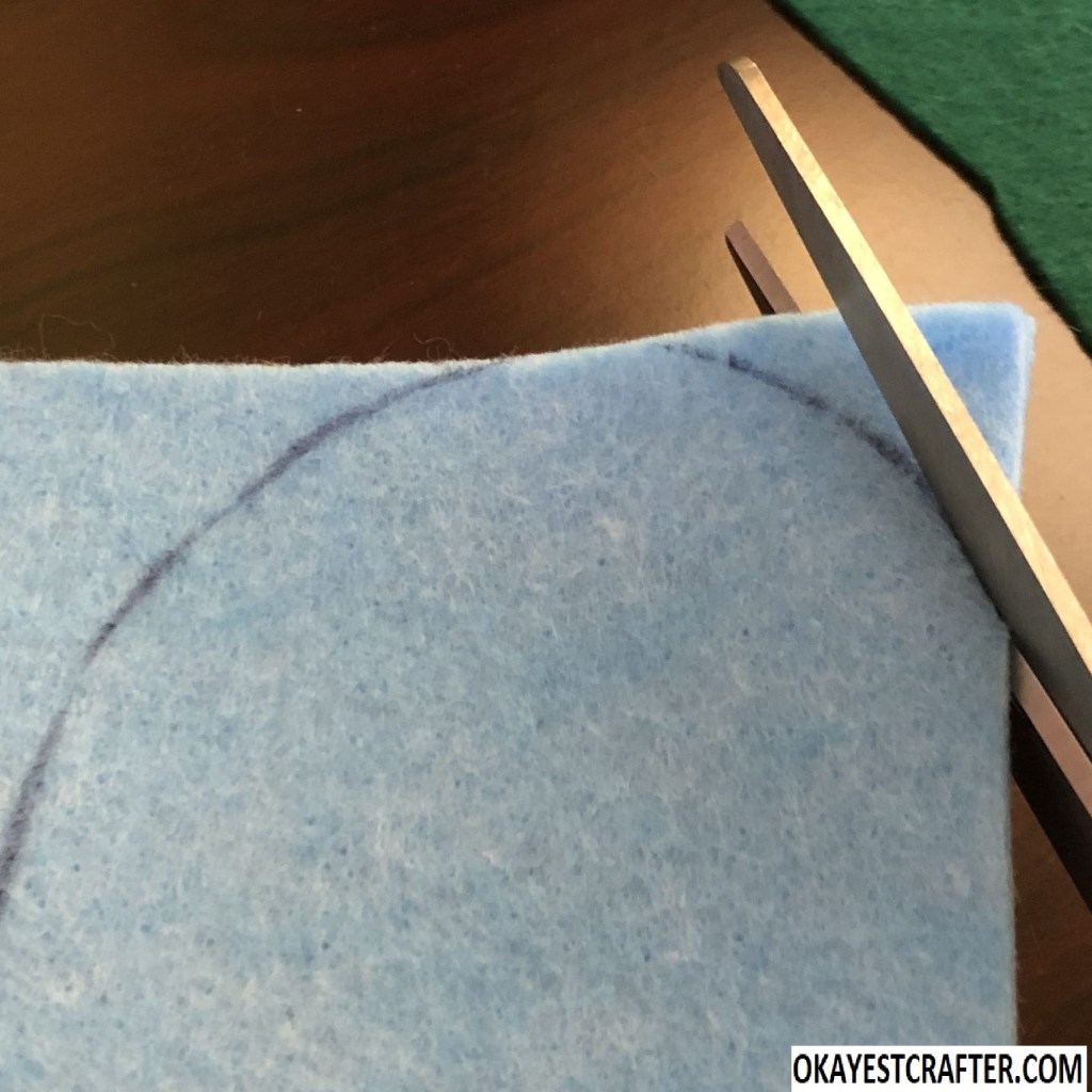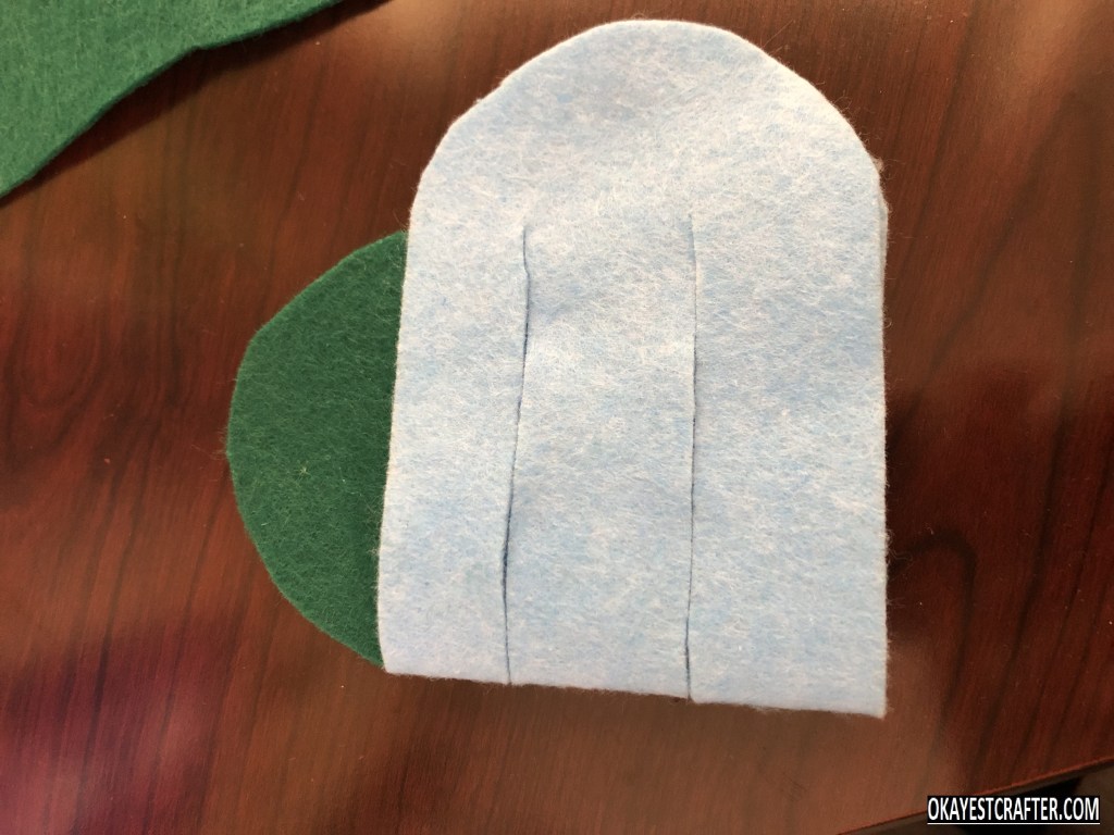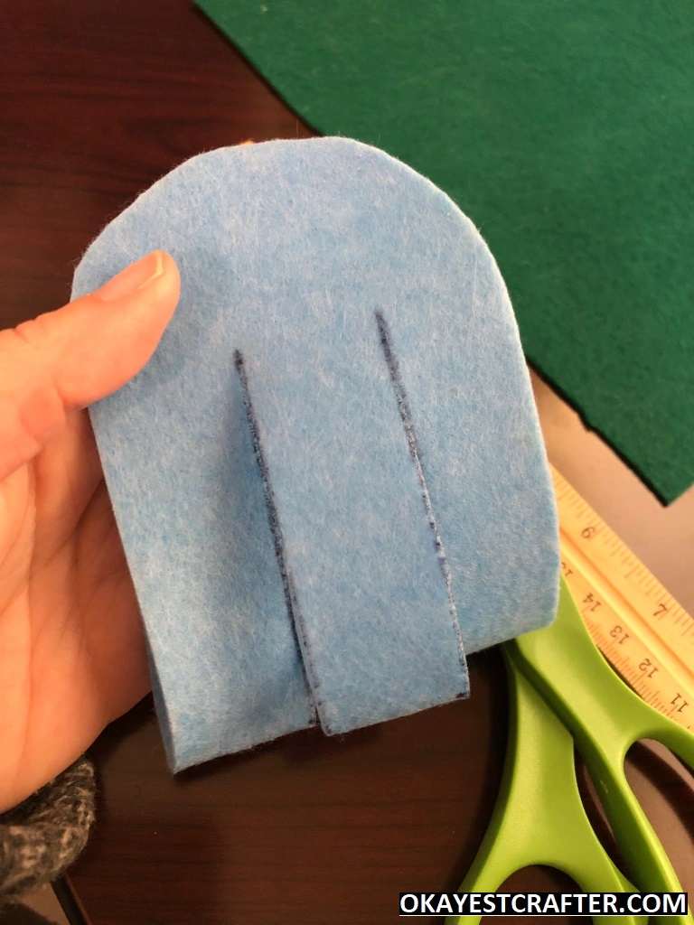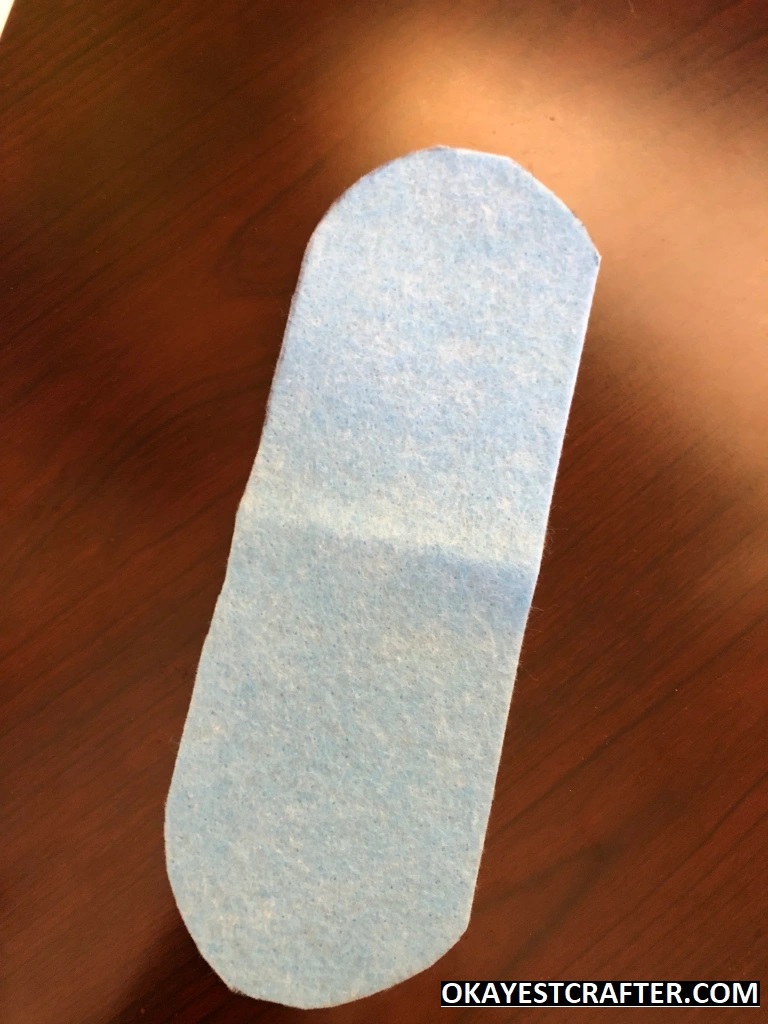 While keeping the felt folded, cut out the entire shape with your scissors but make sure not to cut the crease. Once it is cut out, you can open it and you will see one large rectangle with a semi circle on each end.