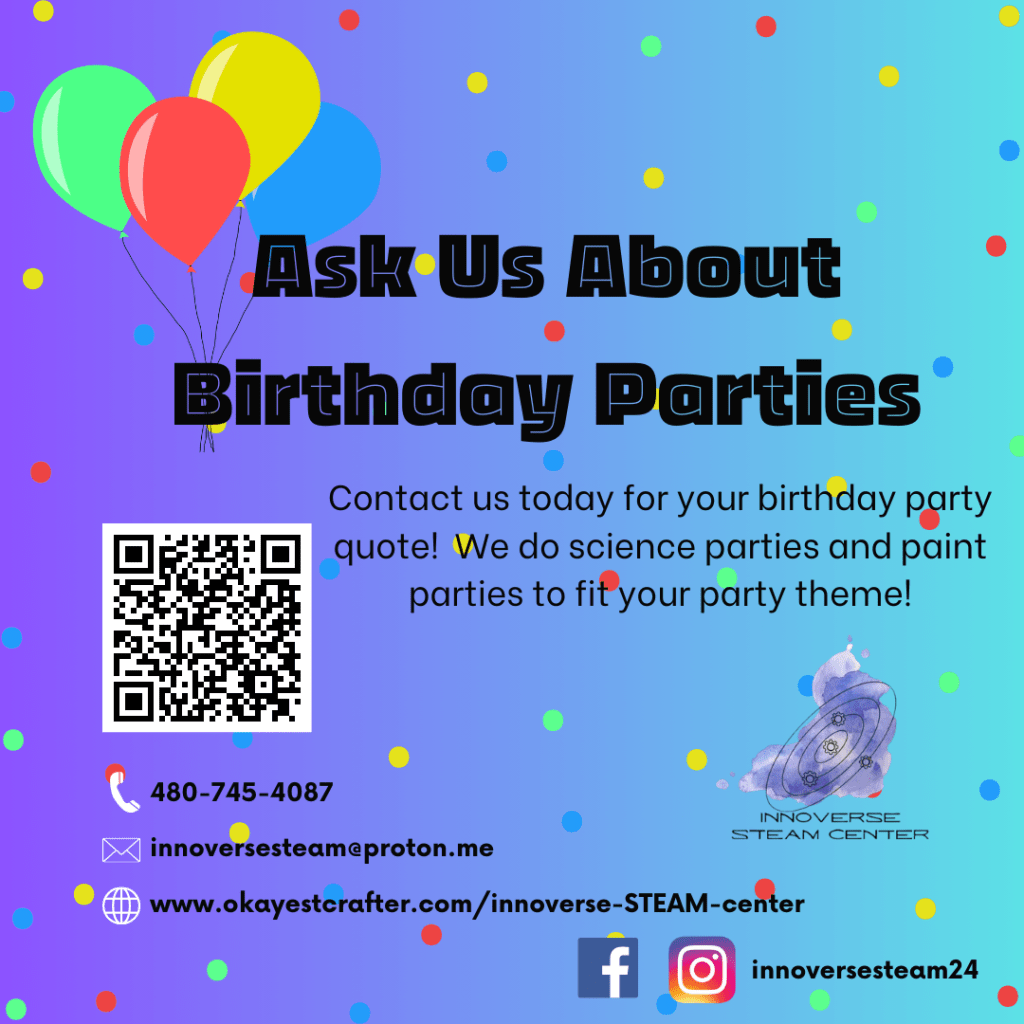 Innoverse STEAM Center offers a unique learning program in Gilbert, AZ. We are excited to offer fun classes, workshops, and events for all ages. Please scroll below for the dates, times and locations and make sure to check back often as we add classes weekly.